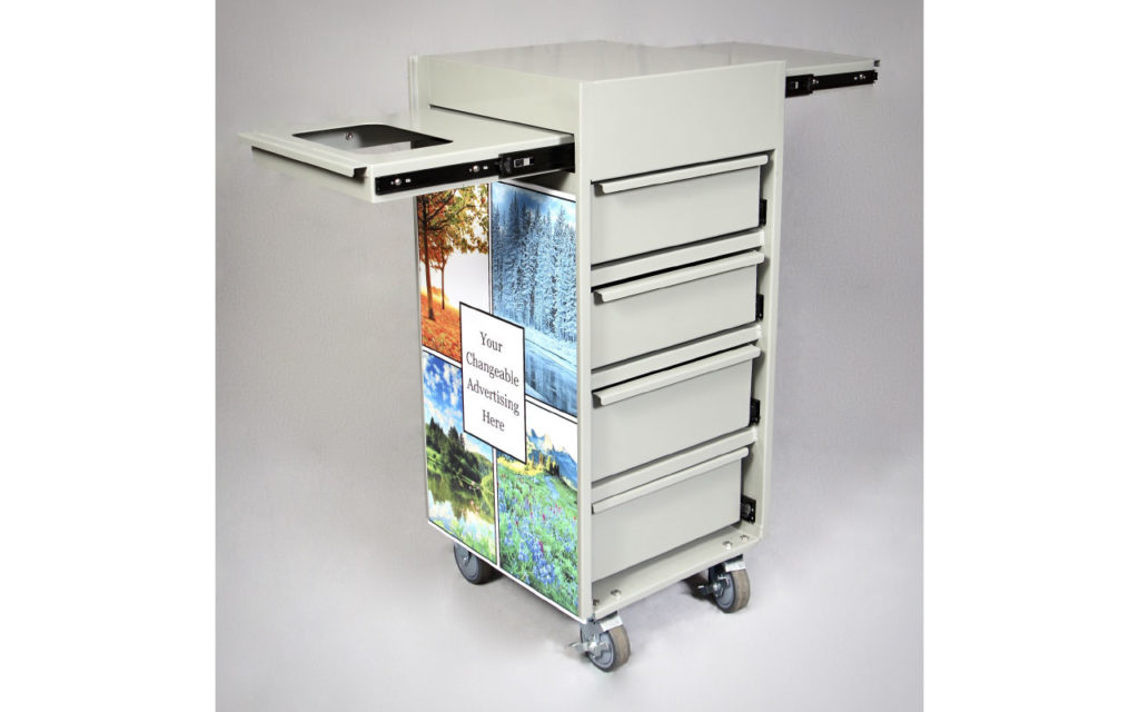 BK Workstations are built with all enclosed aluminum. The aluminum framing is reinforced to be sturdy, durable and made to last for 20 years or more. With four pull-out drawers that are deep and self-locking, it allows for easy filling, storage and cleaning. It is great for storing everything that you need to keep organized. The cart is perfect for phlebotomy blood-draw supplies like tubes, bandages, co-flex, gloves, inventory supplies or educational supplies. The two top pull-out aluminum shelves allow for a work surface to hold a laptop, clipboard, documents or all the tools you need readily available and at your fingertips. The 4-inch easy-rolling, locking casters make it the perfect mobile solution for on-the-go pushing effortlessly.