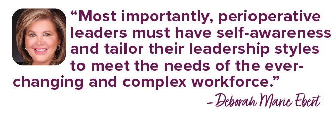 “Most importantly, perioperative leaders must have self-awareness and tailor their leadership styles to meet the needs of the ever-changing and complex workforce,” says Ebert.