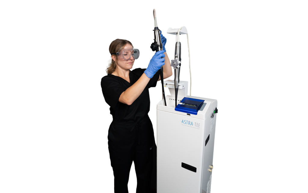 The ASTRA TEE and ASTRA VR Automated Reprocessors are compatible with leading transesophageal (TEE), transvaginal and transrectal ultrasound probes (including biplane probes up to 16 inches). With the ability to disinfect up to two probes at once, taking an average of 10-16 minutes to complete with no sleep mode, ASTRA allows for fast and simplified probe turnaround. ASTRA is compatible with reusable, industry-leading disinfectants to help reduce long-term operating costs compared to expensive, single-use bottles. The automated data logging, consumable tracking and easy-to-follow prompts can help you stay compliant with The Joint Commission standards.