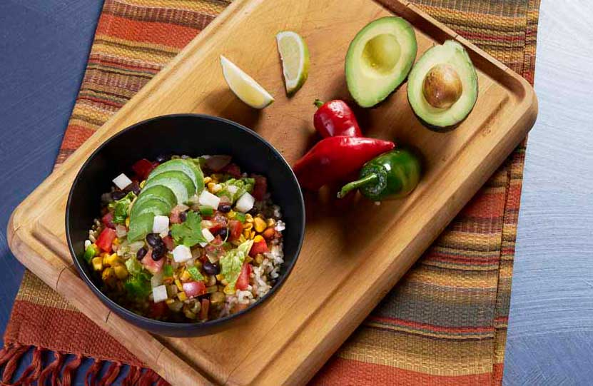 This recipe is a perfect summer dish and it’s loaded with beneficial ingredients. Black beans provide fiber and protein for energy, corn provides zinc, eye-healthy lutein, and brown rice is full of fiber for gut health as well.