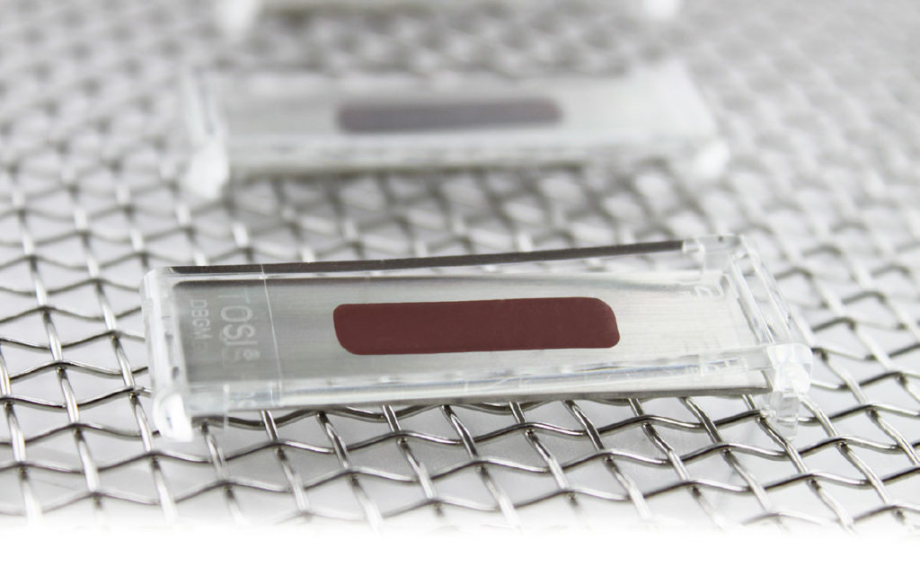 TOSI is the first device to provide a consistent, repeatable and reliable method for evaluating the cleaning effectiveness of the automated instrument washer. This is possible because the blood soil is manufactured to exacting specifications each and every time. When metered onto the stainless steel plate, the TOSI is completely analogous to a stainless steel instrument soiled with dried blood. Placed in the see-through plastic holder, the challenge is identical to the areas of instruments typically hidden from view (i.e., box locks). The routine use of this test will help insure that your instrument washer is performing at a consistent level, enhancing the routine visual inspection of instruments.
