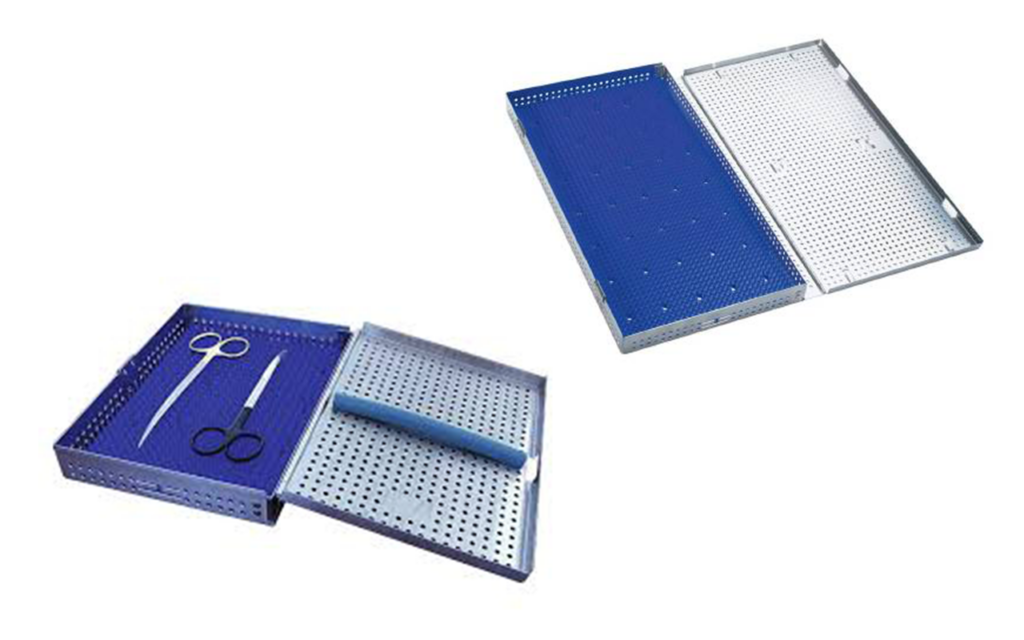 Miltex Instrument Cassettes, distributed by Henry Schein Medical, are manufactured with passivated stainless steel and are available in a variety of sizes and configurations to meet all storage needs. The cassettes also feature a double-hinged, “Tuck-Away” lid that folds under for easy storage during use. This ensures that the lid is not misplaced during procedures, saves valuable space over single-hinge lids, and provides an incline for better instrument viewing and access during procedures. Silicone strips and mats are also available to assure instrument adhesion and retention when the lid is closed. These soft cushion options are customized to fit perfectly into Miltex Cassettes and protect your instrument investment long into the future.
