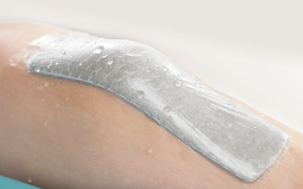 Specifically designed for incisions, Mepilex Broder Post-Op Ag helps medical personnel balance the many demands of incision management and deliver the best possible care. Mepilex® Border Post-Op Ag is a showerproof antimicrobial post-operative dressing that effectively absorbs and retains drainage[1,2,3]. The Safetac interface minimizes pain and peri-wound skin damage at dressing removal [4,5,6]. The dressing seals the wound edges, preventing drainage from leaking onto the surrounding skin, minimizing risk of maceration[6]. The flex-cut pad gives high flexibility and good conformability over joints, such as knees or hips, promoting patient mobilization[4]. The dressing inactivates wound related pathogens within 30 minutes with sustained effect up to seven days[7,8,9].