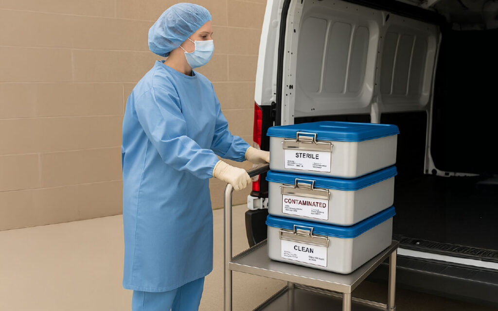 AAMI TIR109:2025 External transport of medical devices processed by health care facilities provides recommendations for transporting processed medical devices in a way that maintains the integrity of sterilized packages. It also provides guidance for the safe and effective transport of contaminated items.