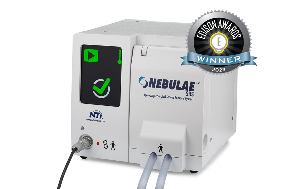 Northgate Technologies Inc. has a safer solution for the operating room. The award-winning NEBULAE Smoke Removal System (SRS) is a closed-loop laparoscopic smoke removal device that can maintain pressure, remove surgical smoke and contaminants while reducing CO2 gas usage. The SRS operates through a closed-loop tubing set that will remove the laparoscopic plume from the patient and returns clean, warmed gas through two fluid trap filters, a carbon filter, and an ULPA filter, capturing more than 99.9999% of contaminants without disturbing pressure.