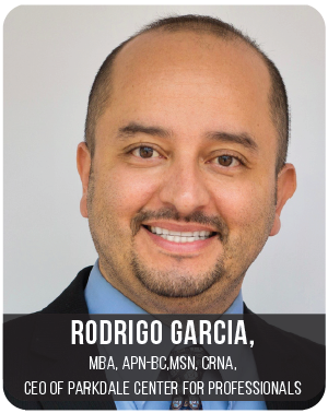 Rodrigo Garcia, MBA, APN-BC,MSN, CRNA, can relate to all of this from a personal perspective. He is the CEO of Parkdale Center for Professionals in Chesterton, Ind., which specializes in helping impaired professionals who are dealing with addiction on the road to recovery.