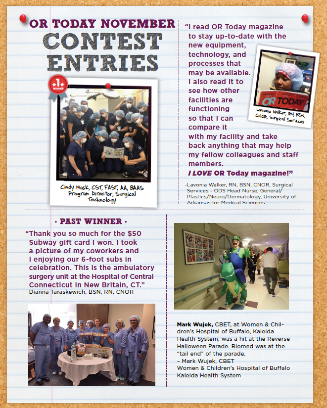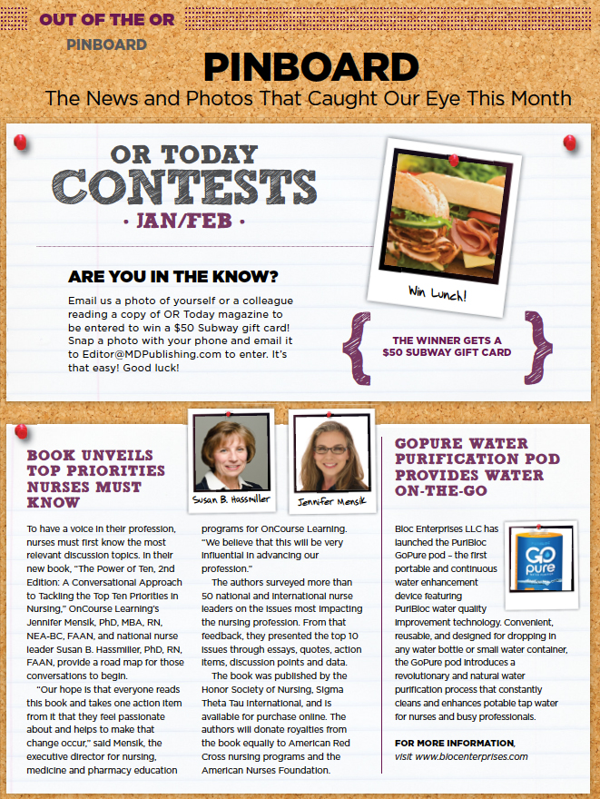 Are You in the Know Contest CompanyThis field is for validation purposes and should be left unchanged.Name* First Last Email* PhoneHospital*Job TitleAddress Street Address Address Line 2 City AlabamaAlaskaAmerican SamoaArizonaArkansasCaliforniaColoradoConnecticutDelawareDistrict of ColumbiaFloridaGeorgiaGuamHawaiiIdahoIllinoisIndianaIowaKansasKentuckyLouisianaMaineMarylandMassachusettsMichiganMinnesotaMississippiMissouriMontanaNebraskaNevadaNew HampshireNew JerseyNew MexicoNew YorkNorth CarolinaNorth DakotaNorthern Mariana IslandsOhioOklahomaOregonPennsylvaniaPuerto RicoRhode IslandSouth CarolinaSouth DakotaTennesseeTexasUtahU.S. Virgin IslandsVermontVirginiaWashingtonWest VirginiaWisconsinWyomingArmed Forces AmericasArmed Forces EuropeArmed Forces Pacific State ZIP Code Upload File*Accepted file types: jpg, png, gif, Max. file size: 2 GB. Email us a photo of yourself or a colleague reading a copy of OR Today magazine to be entered to win a $50 Subway gift card! Δ Share Tweet LinkedIn
