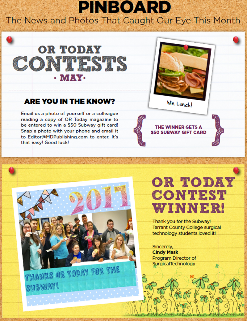 Are You in the Know Contest PhoneThis field is for validation purposes and should be left unchanged.Name* First Last Email* PhoneHospital*Job TitleAddress Street Address Address Line 2 City AlabamaAlaskaAmerican SamoaArizonaArkansasCaliforniaColoradoConnecticutDelawareDistrict of ColumbiaFloridaGeorgiaGuamHawaiiIdahoIllinoisIndianaIowaKansasKentuckyLouisianaMaineMarylandMassachusettsMichiganMinnesotaMississippiMissouriMontanaNebraskaNevadaNew HampshireNew JerseyNew MexicoNew YorkNorth CarolinaNorth DakotaNorthern Mariana IslandsOhioOklahomaOregonPennsylvaniaPuerto RicoRhode IslandSouth CarolinaSouth DakotaTennesseeTexasUtahU.S. Virgin IslandsVermontVirginiaWashingtonWest VirginiaWisconsinWyomingArmed Forces AmericasArmed Forces EuropeArmed Forces Pacific State ZIP Code Upload File*Accepted file types: jpg, png, gif, Max. file size: 2 GB. Email us a photo of yourself or a colleague reading a copy of OR Today magazine to be entered to win a $50 Subway gift card! Δ Share Tweet LinkedIn
