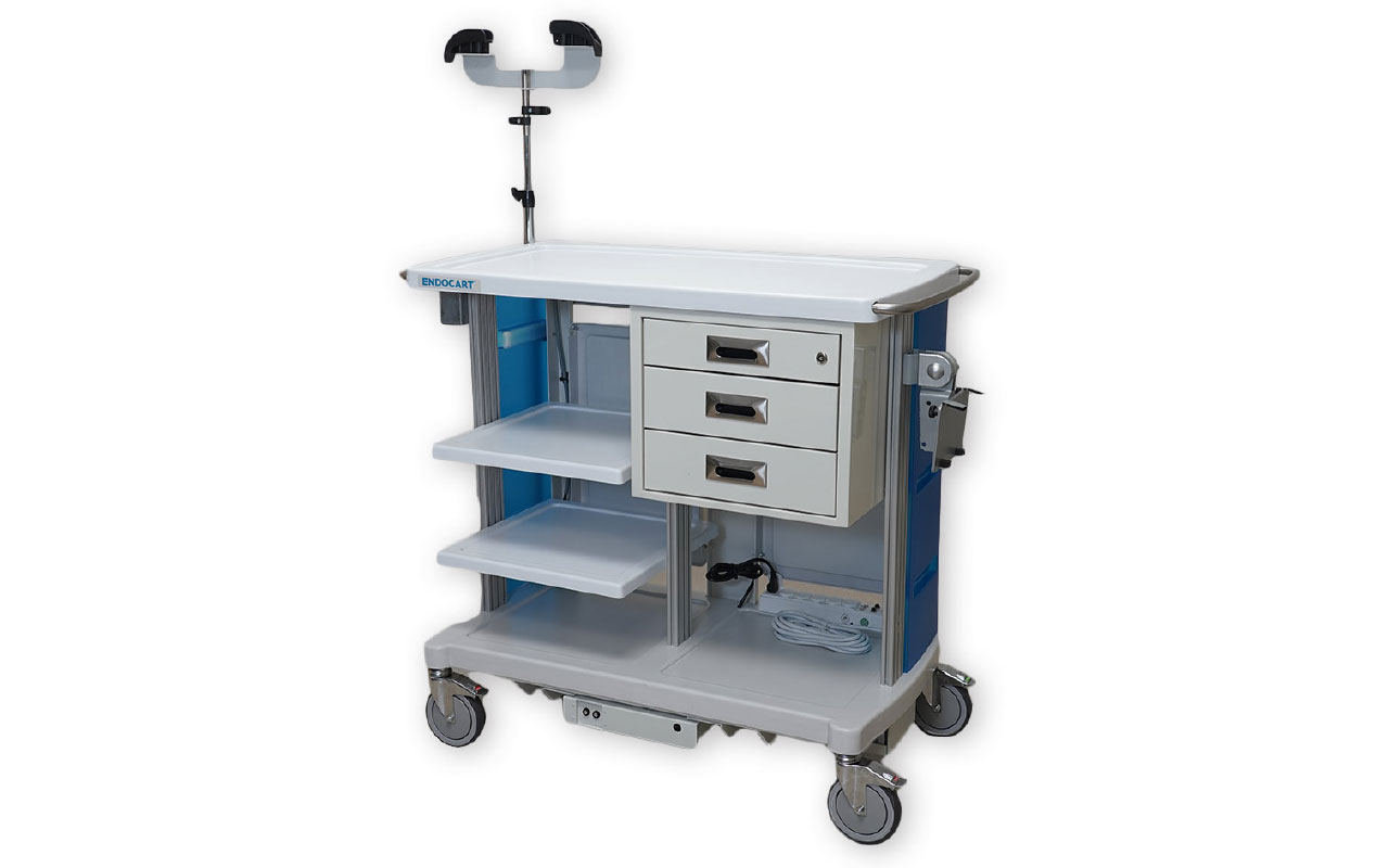 The Endocart was created for GI nurses by GI nurses to help solve the challenges they face every day in the procedure room. Endocart is one of only a few brands of endoscopy carts on the market today. Lightweight and durable, these carts have a variety of customizable options, including monitor mounts, shelves, storage baskets, scope hangers and drawers. The company offers three models including a motorized version for increased efficiency and safety while keeping all medical supplies organized during transport. All models come with an 18-month warranty.