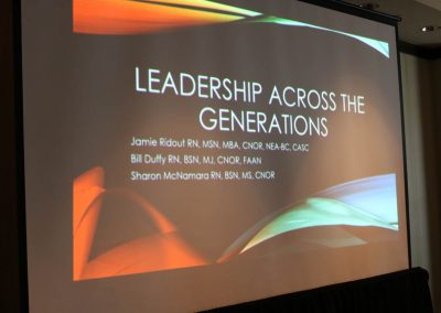 The conference kicked off on Sunday morning with registration and a CNOR Prep Course presented by the Competency and Credentialing Institute (CCI). Education continued into the afternoon with CE super sessions. The speakers gave phenomenal presentations and received a lot of positive feedback from attendees. Phyllis Quinlan’s presentation “Understanding and Effectively Managing Bullying & Incivility in Your Perioperative Department” was described by an attendee as “excellent, motivating and encouraging.” Sharon McNamara, William Duggy and Jamie Ridout also gave a very impressive super session titled “Leadership Across Generations.” One attendee said, “Sharon McNamara is an awesome leader and speaker! This has been a creative and insightful presentation.”